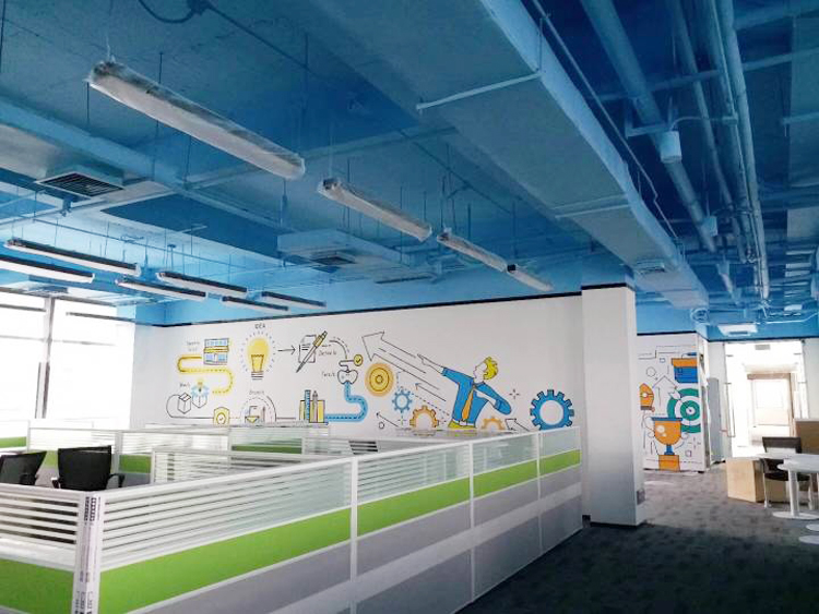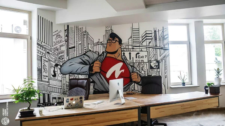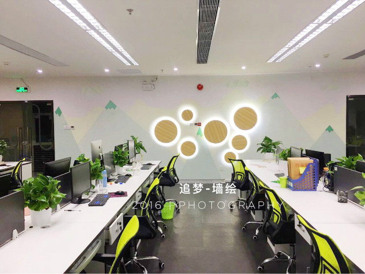 每个企业或者工作室都需要文化墙的作用,想让工作室或者办公室变得美丽舒适很不容易,运用墙绘来装饰工作室是完美的做法,墙绘的风格多变,在工作室中能选择几何风格,线条风格等的墙绘来装饰,这些风格的墙绘可简约亦可唯美,只要你想要,什么风格都不是问题。在设计方案的时候,无论哪种类型的图案,都要达到令人振奋人心的效果 ,以达到打起员工精神,努力为公司创造效益的目的