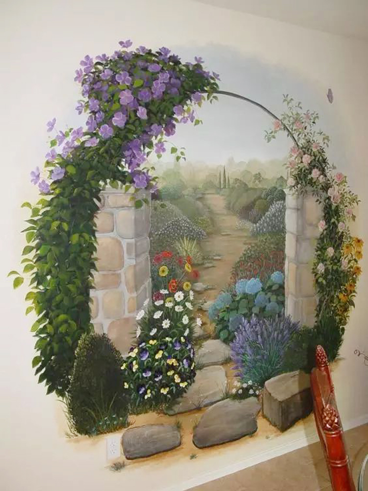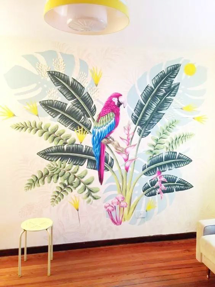 墙绘来源于生活,是一门艺术,但在家庭装修中,它也只是一种装饰方式,它需要为家居生活服务。室内墙绘设计,不仅仅需要满意的艺术效果,更重要的是它能与不同空间相结合,营造舒适、美观的生活环境。