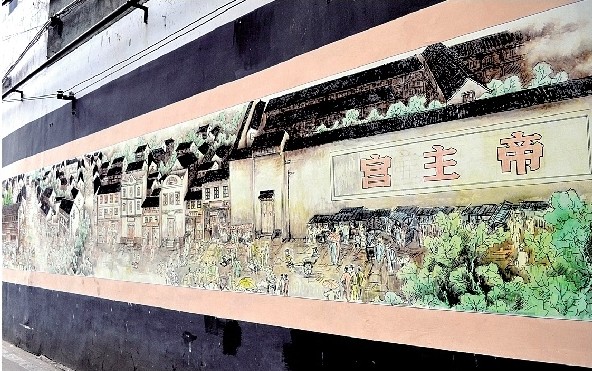 最近,一幅藏于江汉区档案馆的水墨画《汉口帝主宫》,被民间画师周建设“搬”上了江汉区民族街和平社区的墙面,向人们展示了汉正街一段鲜为人知的历史。