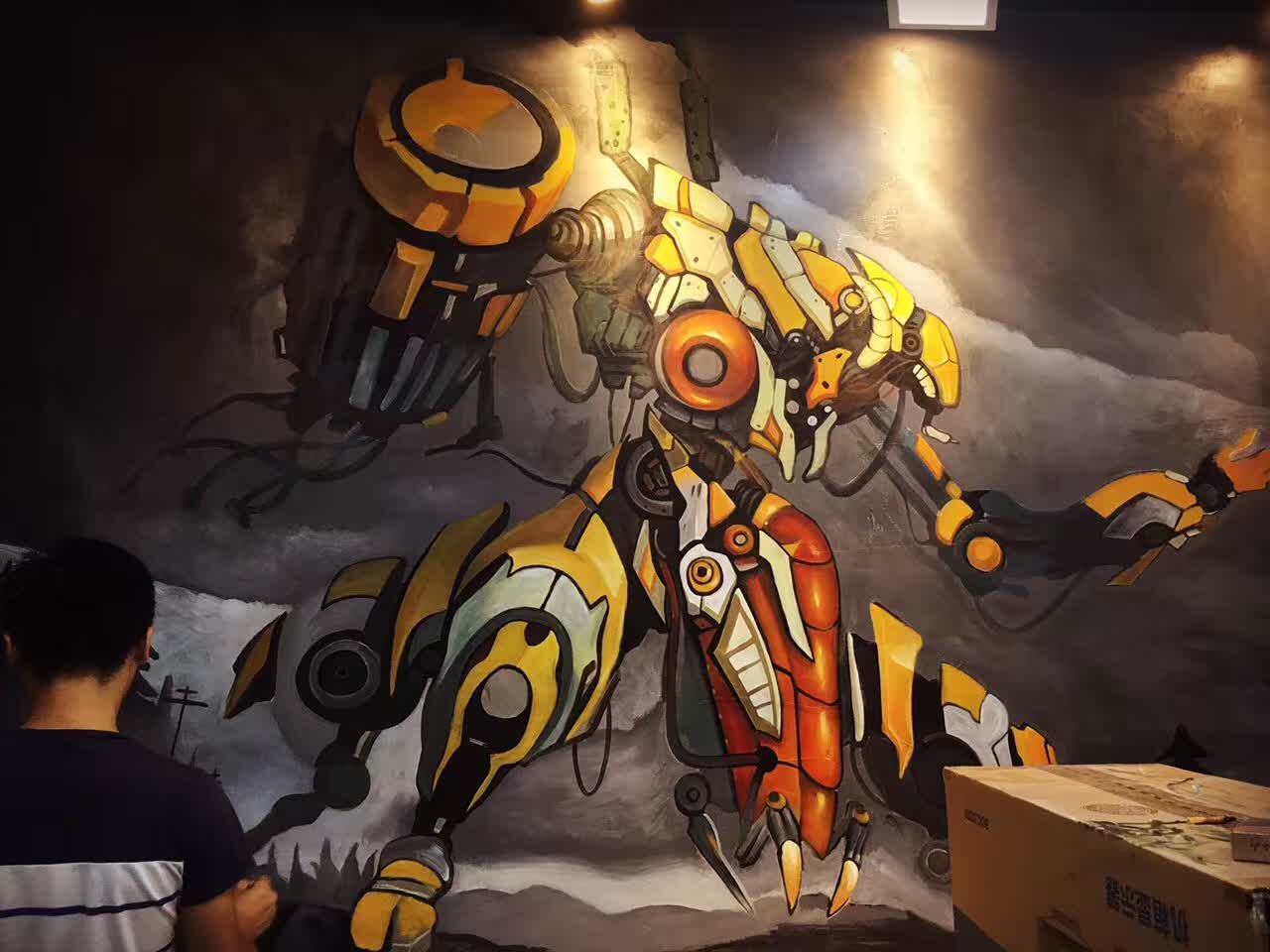 ▲据说90%的男生都会喜欢机械风格的墙绘