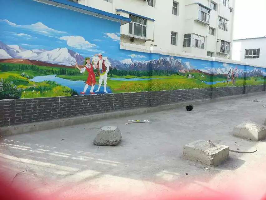 今天的我们又将留给后人什么呢?是精湛的画技,还是迷离的色彩,我想更多的还是源于我们对生活的感性思考吧。在钢筋水泥铸就的城市中,冷漠成为人们脸上的惯用表情,车水马龙的街头,喧嚣的城市却让人感觉到一股无法忽略的冷漠气息。而街角拐弯处幼儿园绚烂清新的图案总是带给路人诸多惊喜和意外。五颜六色的图案代替了单调的城市色彩,除了视觉享受,更是内心一点温暖的感动。网上一搜,才知道,这是手绘壁画。翻看壁画的前世今生,才明白,原来它早已存在于几千年前我们失之交臂的那个年代。壁画在历史的长河中,早具有闪耀的光芒,最早的距今已约2万年。