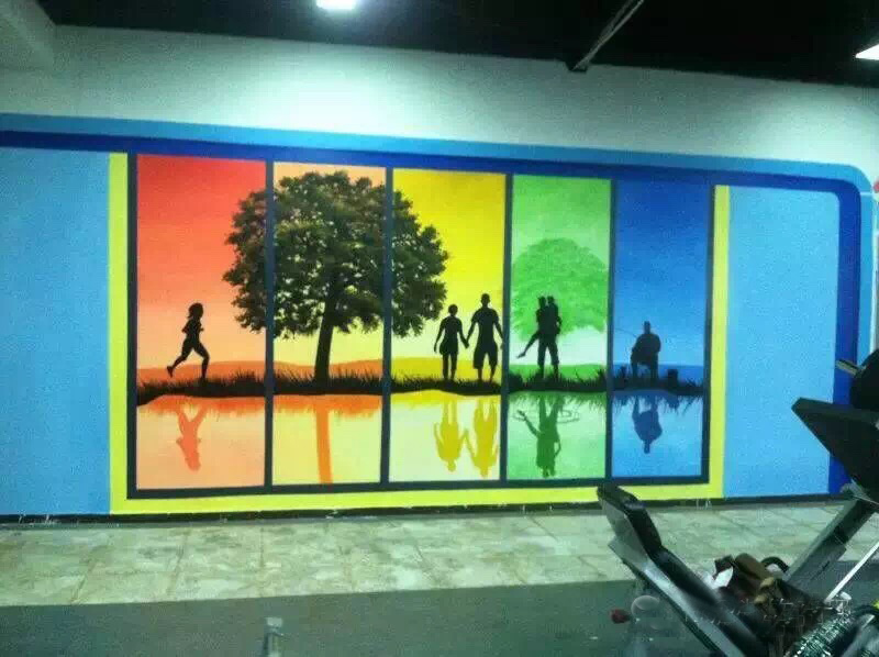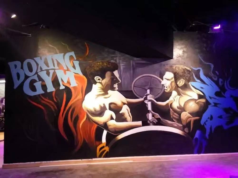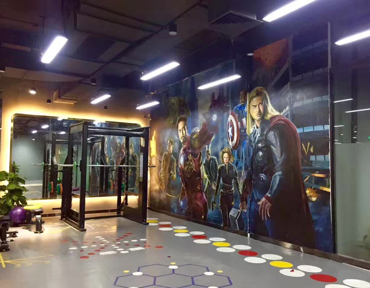 很多健身房做墙体彩绘的时候,会选择涂鸦、运动等色彩明亮、充满动感的图案作为墙体彩绘内容,而案例中的这家健身房,与众不同地选择了简约清新风格的墙绘。每一个健身区域都用简单明了的线描图案和文字的结合,对健身内容进行了高度的总结概括,让人一眼就能看懂。而色彩精简到只有黑色与白色。整个健身房的设计简约明快,环境一览无余,干净整洁,看起来更高端有气质。