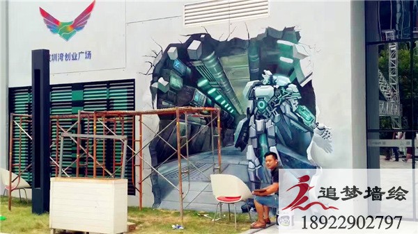 追梦墙绘承接东莞墙体彩绘,3D立体画,成功案例多,独一无二的独特艺术空间.多年经验,创意设计+纯手工绘画.还在等什么? 24小时联系电话:18922902797