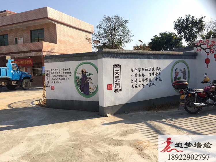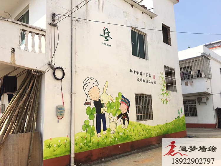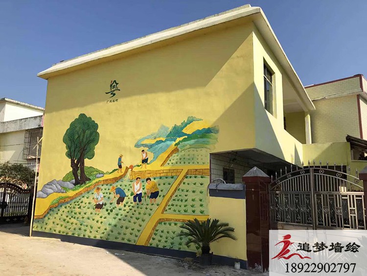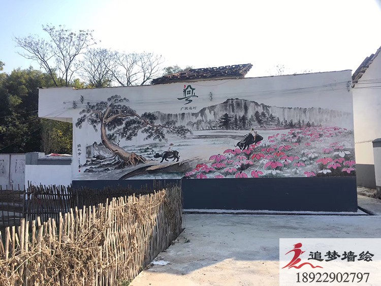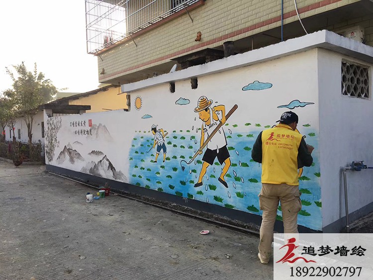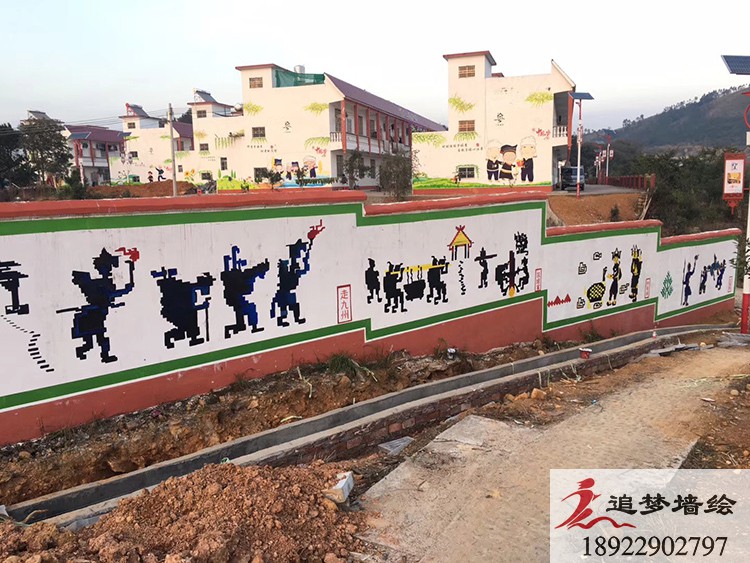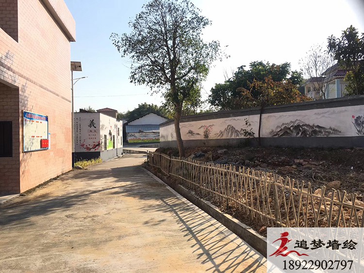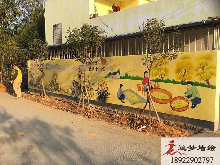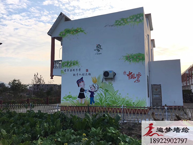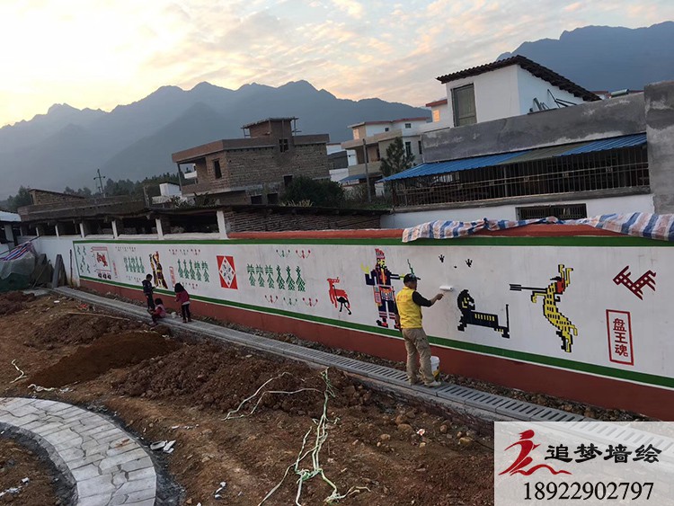 墙绘项目介绍:根据客户的要求,结合了当地瑶族的特色风格服装和文化同时结合了中国梦的主题来进行设计,在主题保证的情况下加上了一些绿叶让画面更加丰满且带有生命力。在另外的一些村子里我们还做客家农耕的墙绘和一些水墨风的墙绘,让每一个村都有他独特的风格。