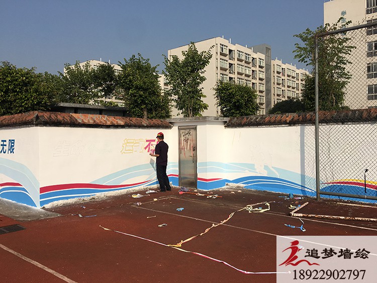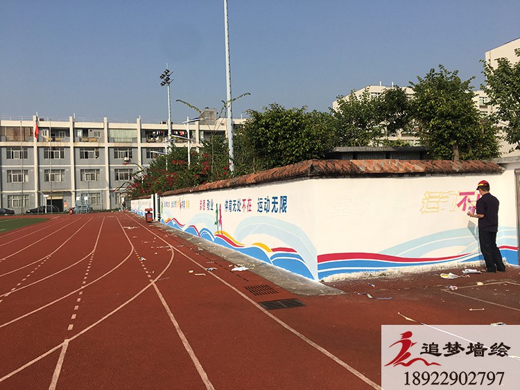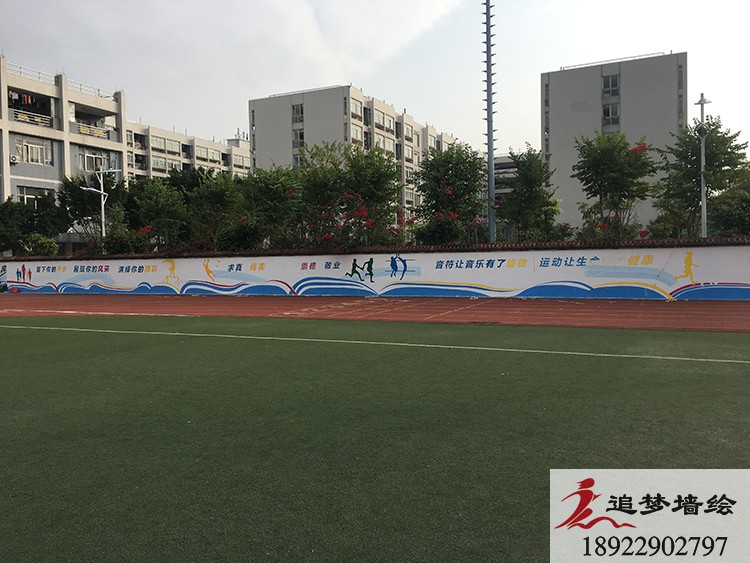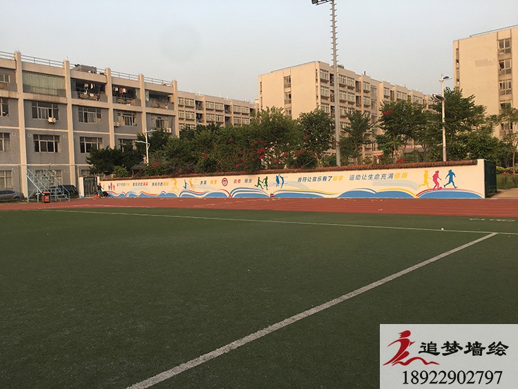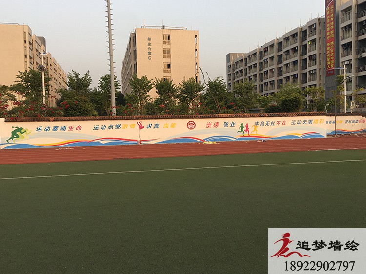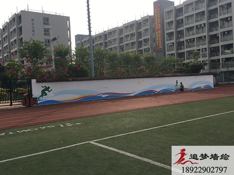 墙绘项目介绍:在运动场上挥洒青春,运动奏响生命运动点燃激情,充满活力和乐动的图案让运动场更添几分色彩