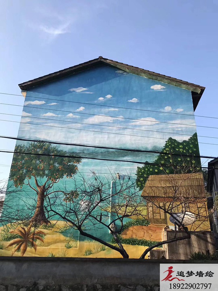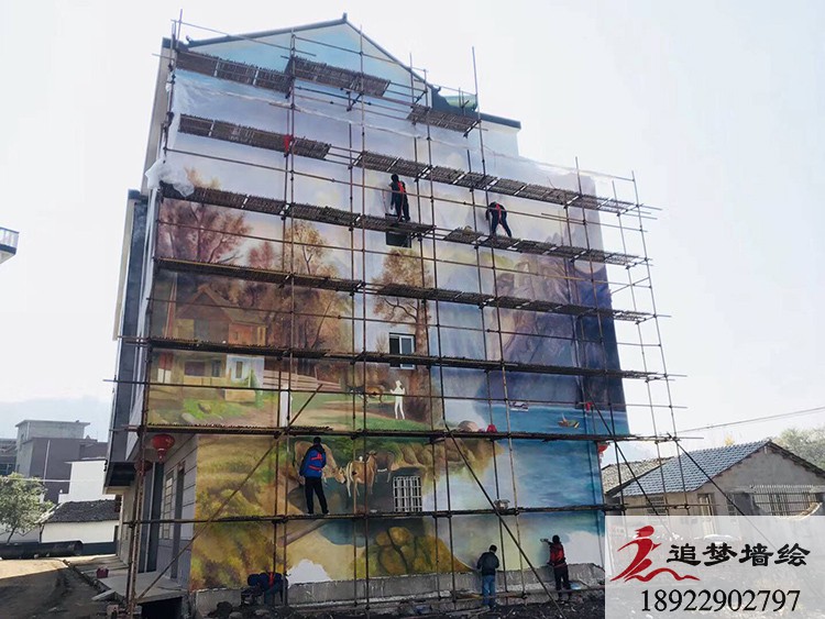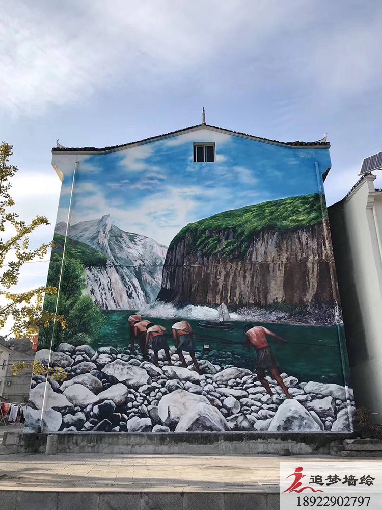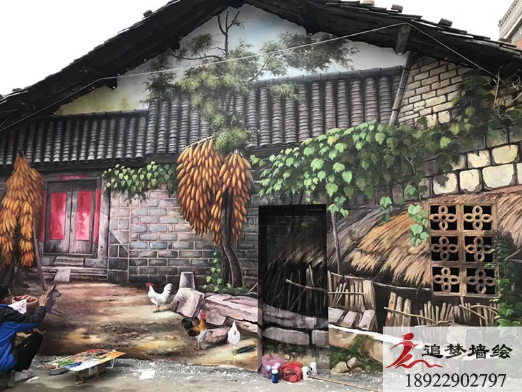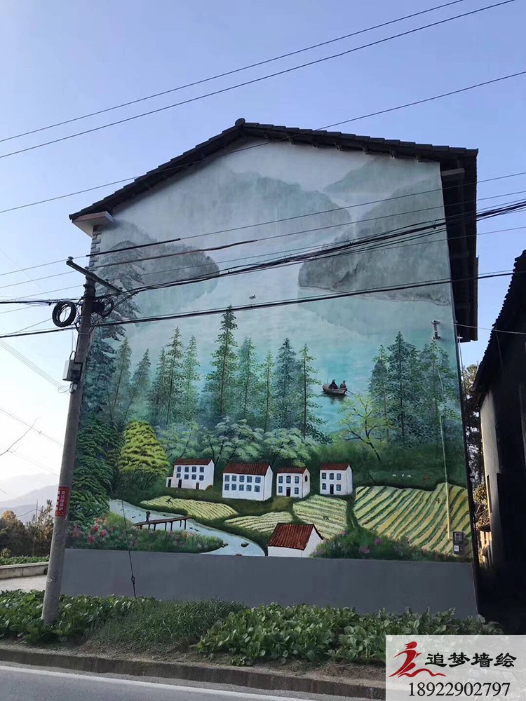 墙绘项目介绍:乡村风景墙绘,运用了一些乡村风貌的风景图来丰富乡村的景色,使上孚村的风貌更加的增添一丝特色。还有一些茶文化的墙面,也托显出一些村里的文化特色