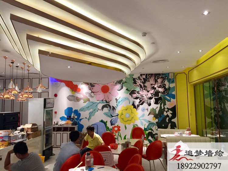 追梦墙绘致力于各种餐厅酒店KTV等背景墙设计 背景墙涂鸦设计 , 专业背景墙手绘 安全方便 专业设计师免费服务,顶尖画师上门绘画施工,环保,时尚,潮流,服务热线:18922902797