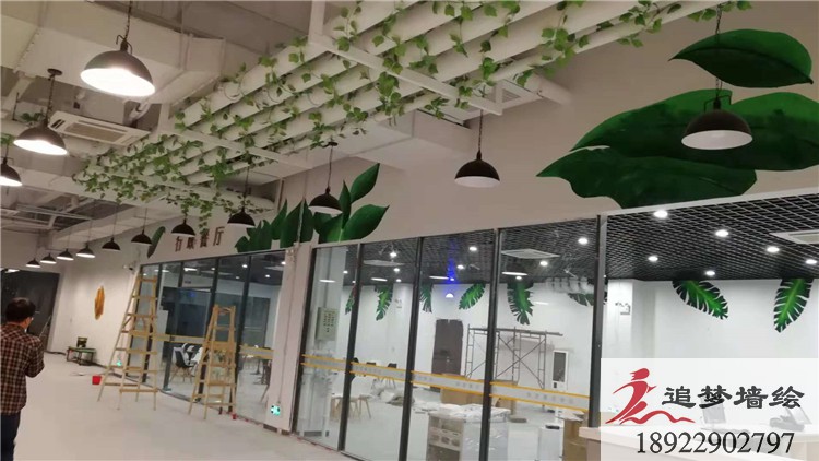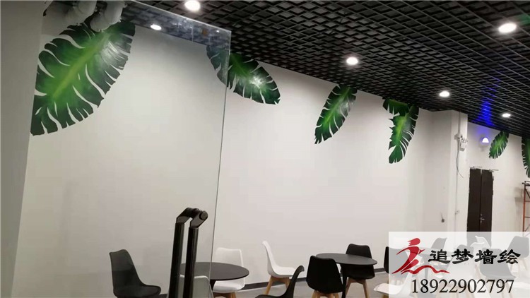 墙绘项目介绍:佛山顺德餐厅墙绘设计,用到了INS风格元素,运用花草与绿叶营造出清新的用餐环境,得到各领导的认可赞许,给追梦墙绘很大的鼓励.