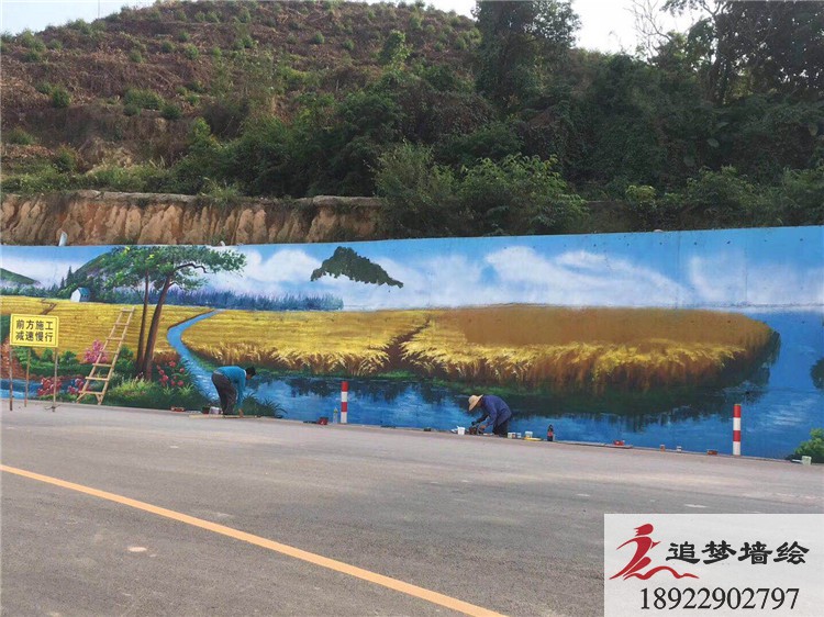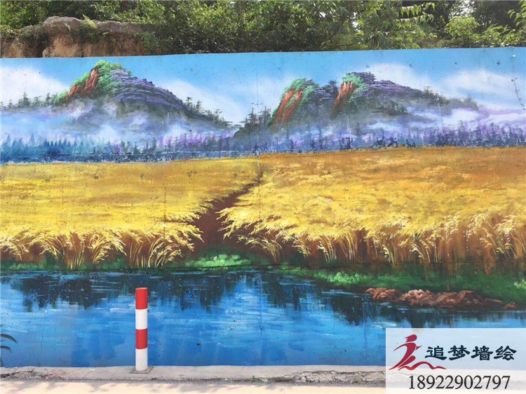 墙绘项目介绍:此次博物馆彩绘,展示了一副农田丰收画面。让人不禁想起白居易的<<观刈麦>>,“田家少闲月,五月人倍忙,夜来南风起,小麦覆陇黄,夜里刮起了南风,覆盖田垄的小麦已成熟发黄”。