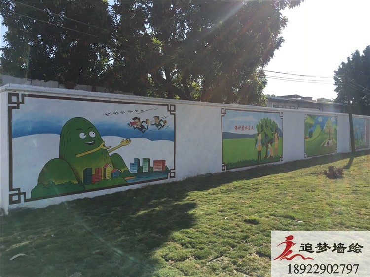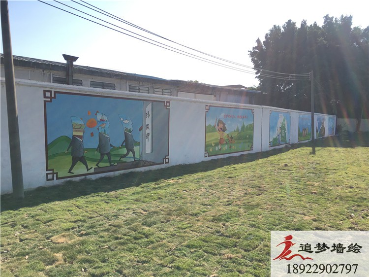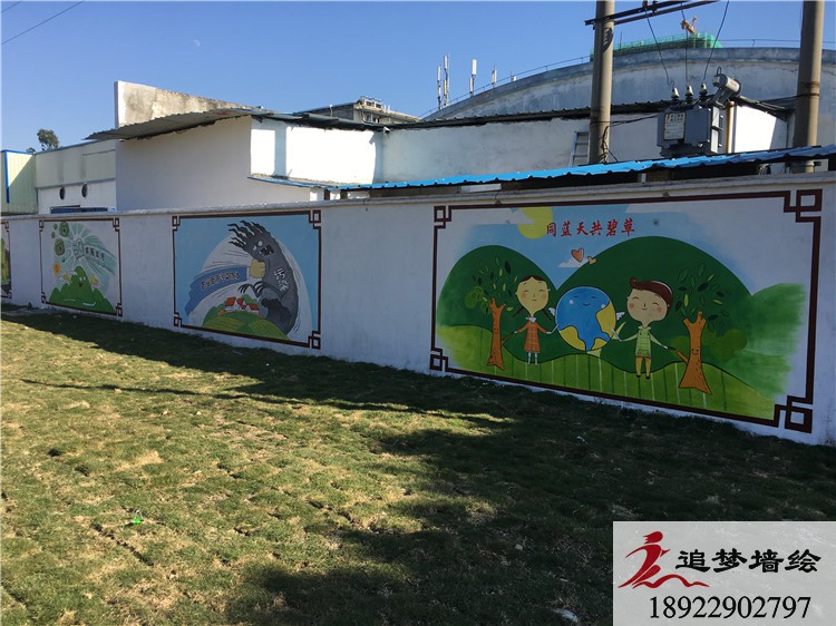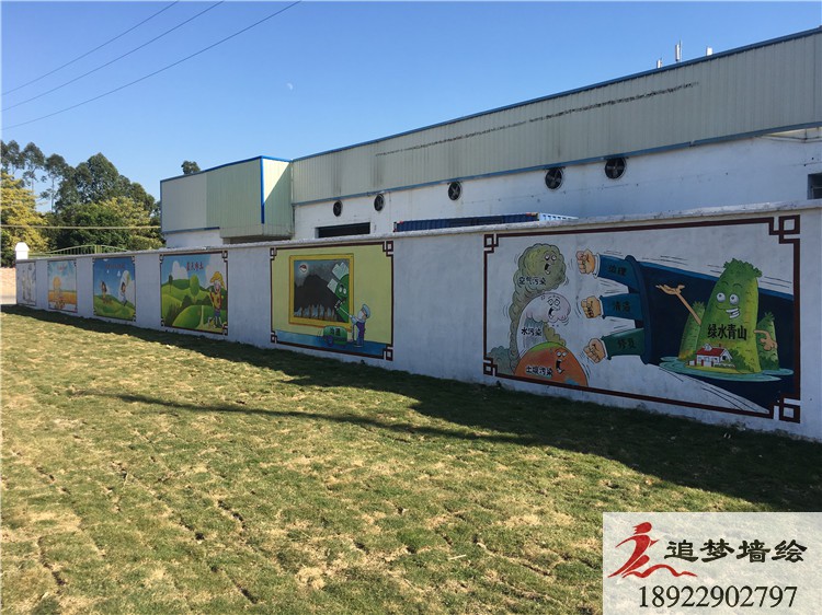 墙绘项目介绍:这次彩绘利用当地绘墙的地理位置,利用两侧墙面长条形的形状特点,将标语设计成一幅一幅单独的画面横向排列,有机结合,以这样图文并茂的形式呼吁人民要爱护环境,打造绿水青山的自然生态环境,内容丰富,贴近生活,将墙体变成美化家园的景观、传播文明的载体和教育群众的阵地,使过往车辆路人在经过时可以观赏到,起到最大化的宣传效果。