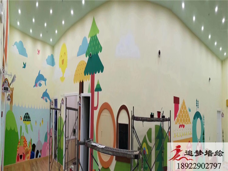 墙绘项目介绍:这次是墙绘偏向卡通的风格,想给孩子们打造一个舒服温馨的环境。