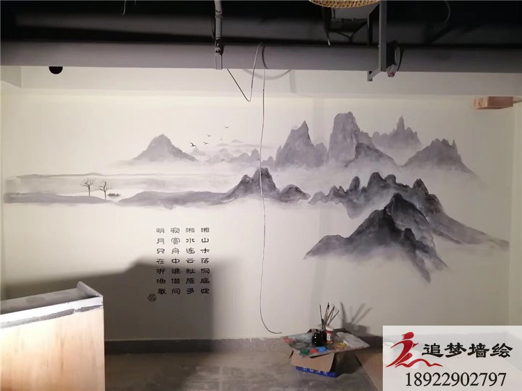 墙绘工程地点:广州墙绘项目介绍:从餐厅的特色出发,将餐厅主打的湘菜用国画形式表现出来,让每副各具特色的水墨画面融恰的待在同一个空间里。
