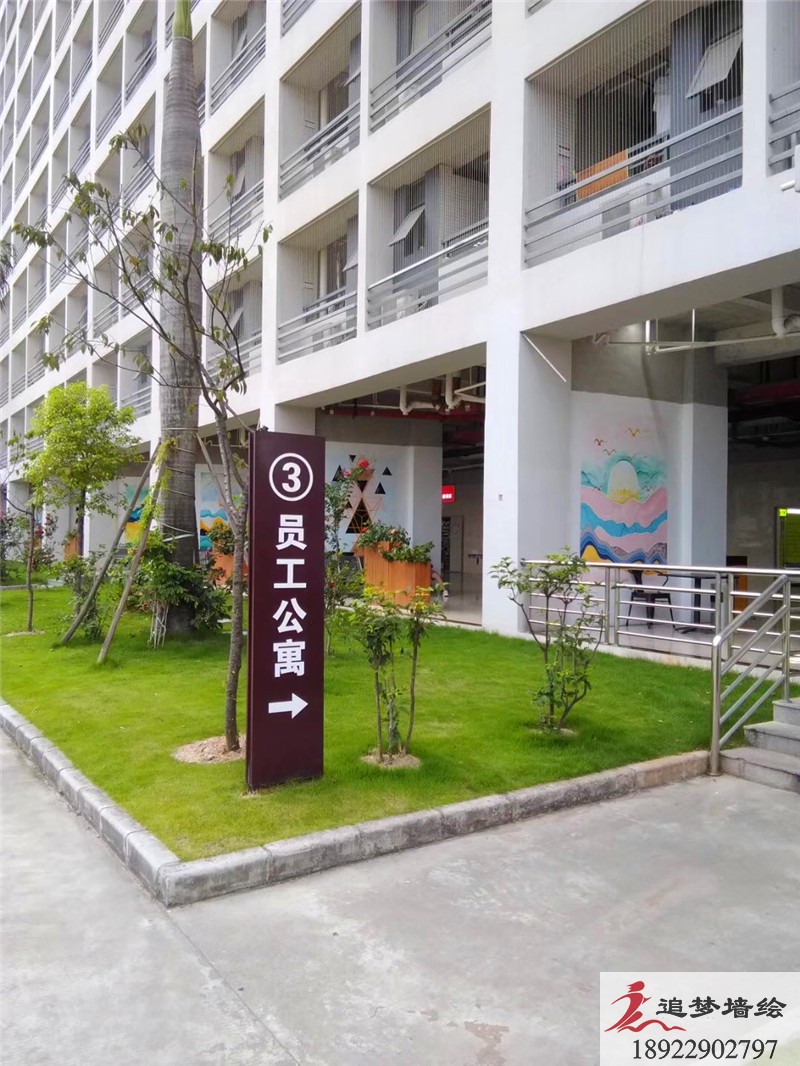 墙绘项目介绍:应长城科技开发项目组的招约,配合开发项目工作,为位于东莞市虎门镇赤岗村的宿舍楼的墙体进行墙体彩绘工作。