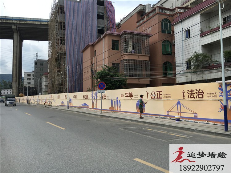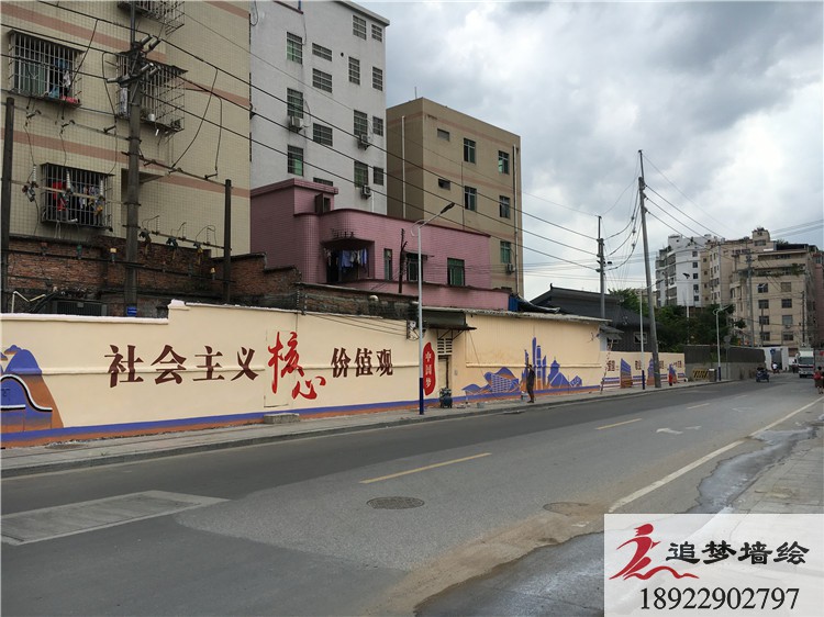 墙绘项目介绍:大源新村的设计主题以简单时尚风格为主。宣传社会主义核心思想,文明价值观。同时也加入了一些创意的广州当地地地标性的建筑。以这样图文并茂的形式弘扬社会主义核心价值观,内容丰富,贴近生活,将墙体变成美化家园的景观、传播文明的载体和教育群众的阵地。流淌于城市的历史,散落于城市的街巷,浸润于城市的民俗,收到了良好的宣传教育效果。