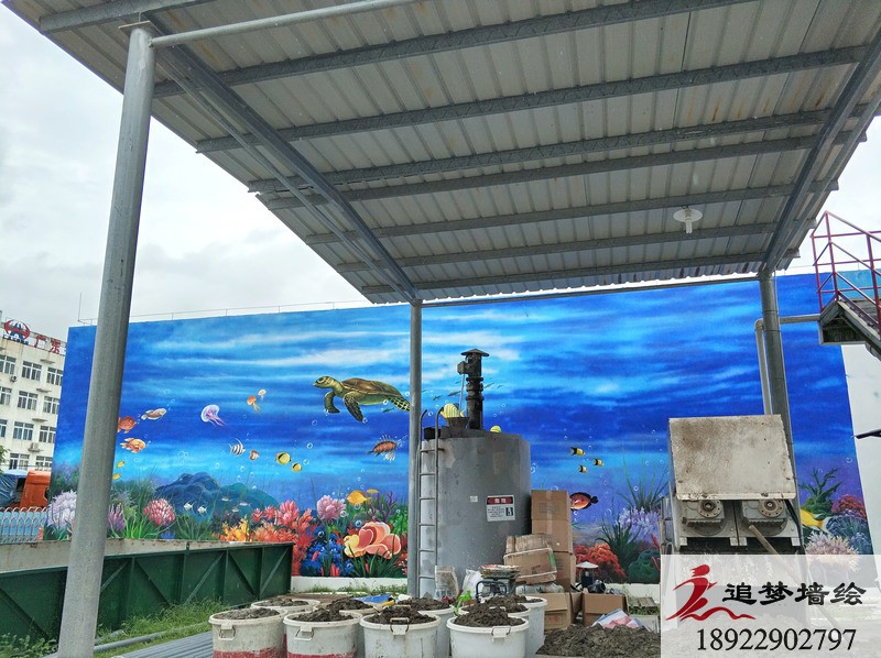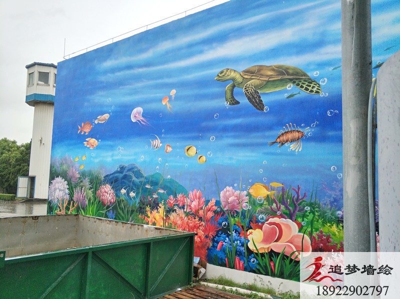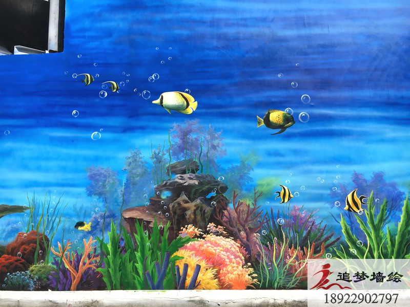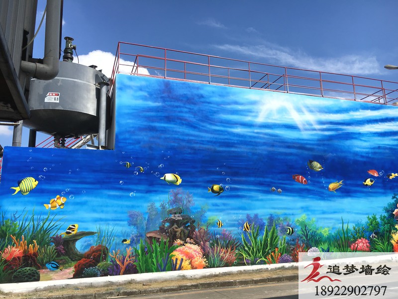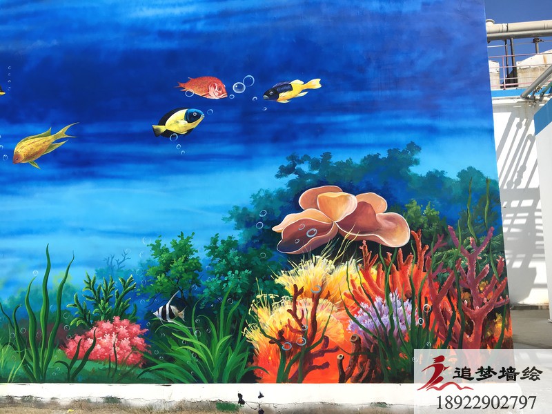 清新的海天蓝加上五彩缤纷的海洋生物,构造出一副让人过目不忘,身临其境的海底世界。我们设计这套3d海洋世界墙绘的目的,是为了让公司的员工,能在繁琐的工作中,得到一些视觉上的放松,同时也让来寻求合作的老板们看到这个公司的与众不同。在墙绘施工前期,我们已经通过上门服务,初步了解了绘画墙面的情况已经整体建筑的走向。之后我们通过与该公司的项目负责人的沟通以及创建墙绘工作群,对这套墙绘方案进行深入的沟通与探讨,最终呈现出这座“海底世界”的效果。我们追梦墙绘相信,一个好的墙绘不仅是为了视觉的享受,同时要兼具公司的内涵与人道主义精神。追梦墙绘一直在,为所有需要墙绘的朋友们努力着,准备着!