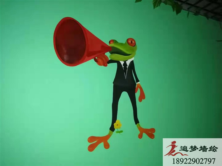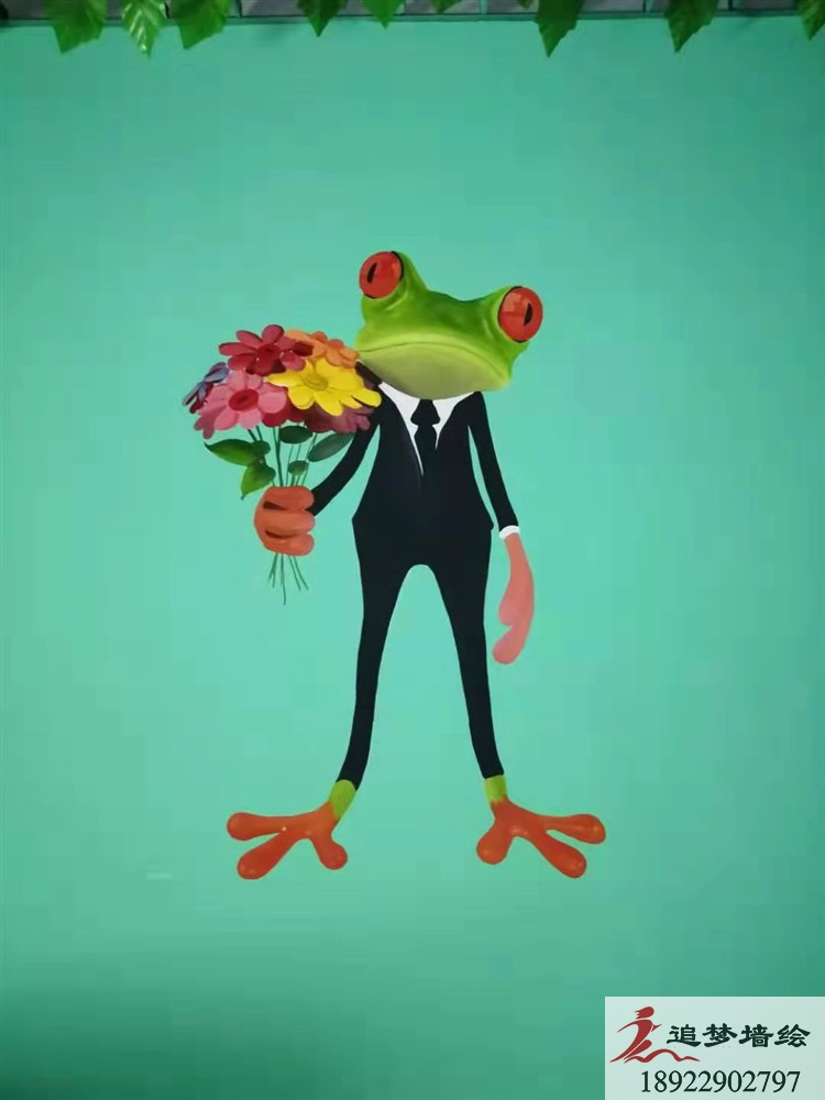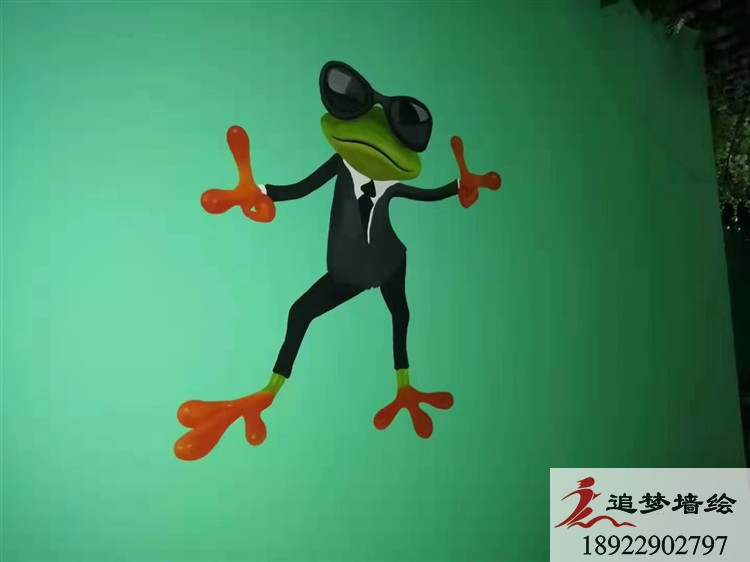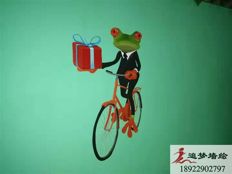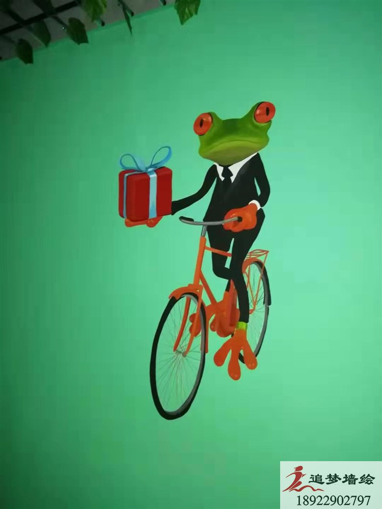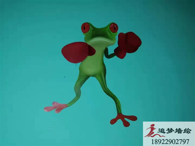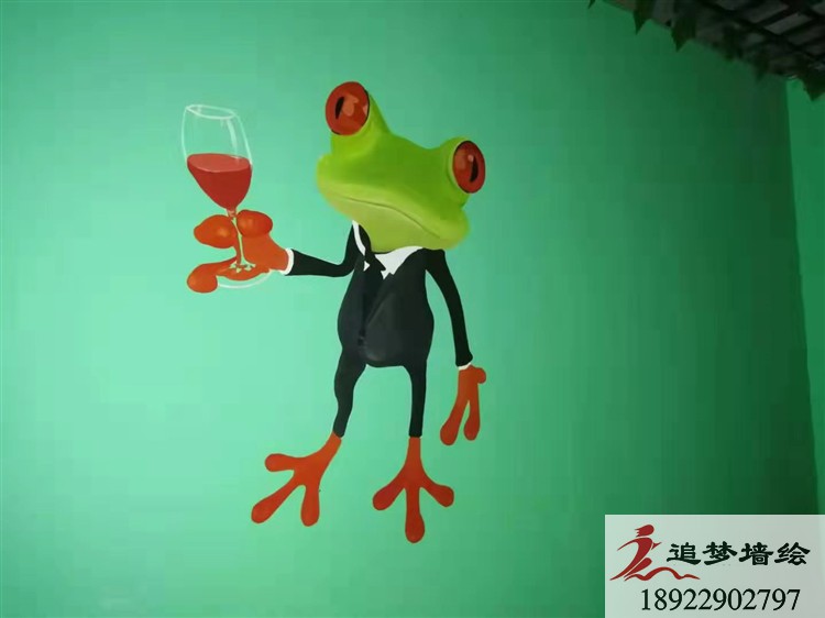 10月中旬我接到一个东莞的客户要求做墙绘,他说主要是经营与蛙有关的餐厅,如牛蛙火锅等,想要一些简洁卡通蛙就好,到时候他还会配一些挂画。我花了点时间到的现场看一下,大概量了下尺寸,还有拍一些现场图,然后与客户聊了一会,问他还有没有其他的需求,什么时候开业等,确认好后,我回到公司马上开工。规划画10只青蛙,然后各个青蛙动作形态各不同,再给客户过目后再过去绘画,因为客户月底就开业了。客户确认好没什么问题了,我们的画师马上就到现场去绘画,一两天的时间就画完了。于是各种各样的有趣跃然墙上,有骑单车的、有拿喇叭喊话的、有手捧鲜花的、有在练习拳击的等等。