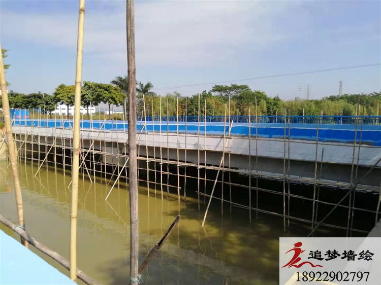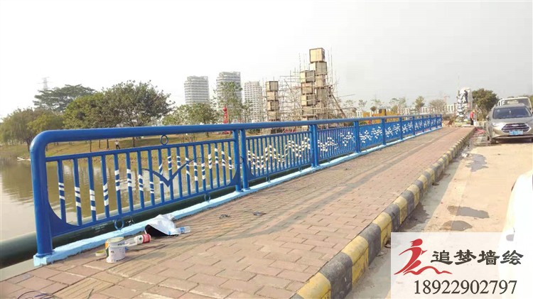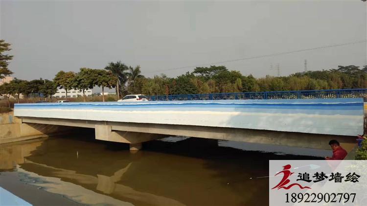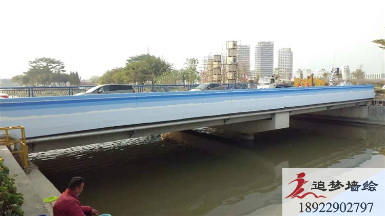 佛山水都湿地公园在佛山市三水区,这里空气清晰,景色优美,很适合人们休闲散步。为了给这座公园增添些许色彩,公园的负责人委托我们追梦墙绘在水上的桥绘画些简单飘带。为了与这里环境相结合,我们采用由白到蓝的渐变色彩,就像天空一样,在这河流之上,让这里看起就不在单调无味,而成了舒适有趣的地方。