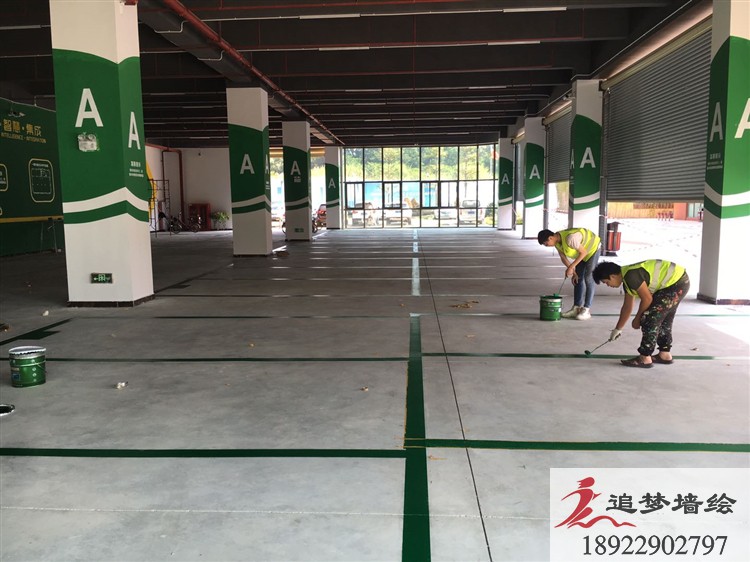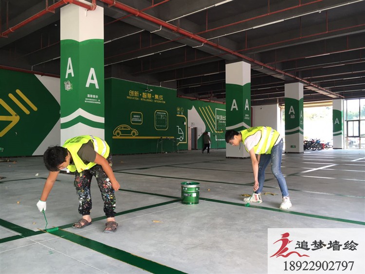 这是在东莞松山湖的一个停车场彩绘,瑞鹰国际,这里是科技产业地,目前是办公为主。现在这里的建设已经快完成了,所以我们来为他们的停车场简单的画几笔,在三四年前,我们就已经来这里画过了,当时画的饭堂还有一些小小的地画。现在这个停车场相比之前那些地方的大很多,好在客户要求画的东西不多,也就四五天的时间就画完了,主要都是画一些标识和标语,还有停车位划分线等。
