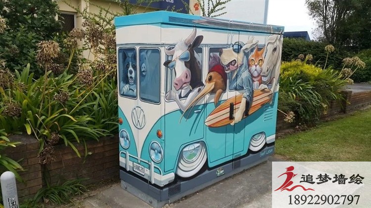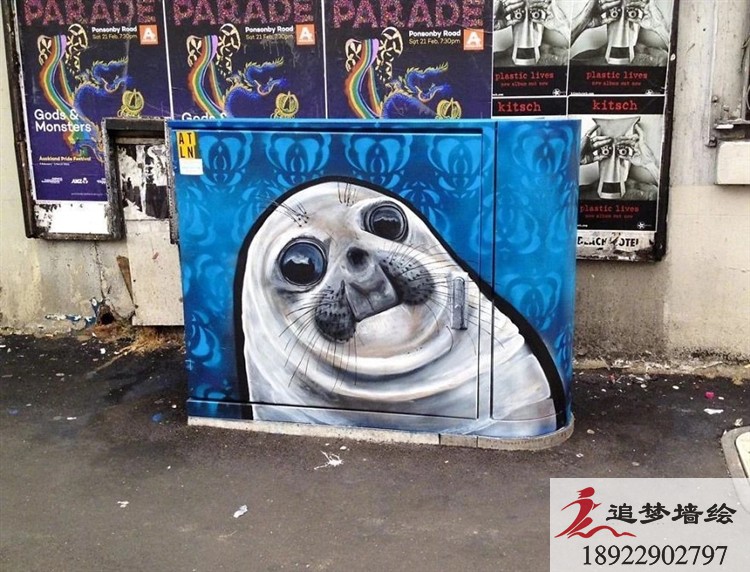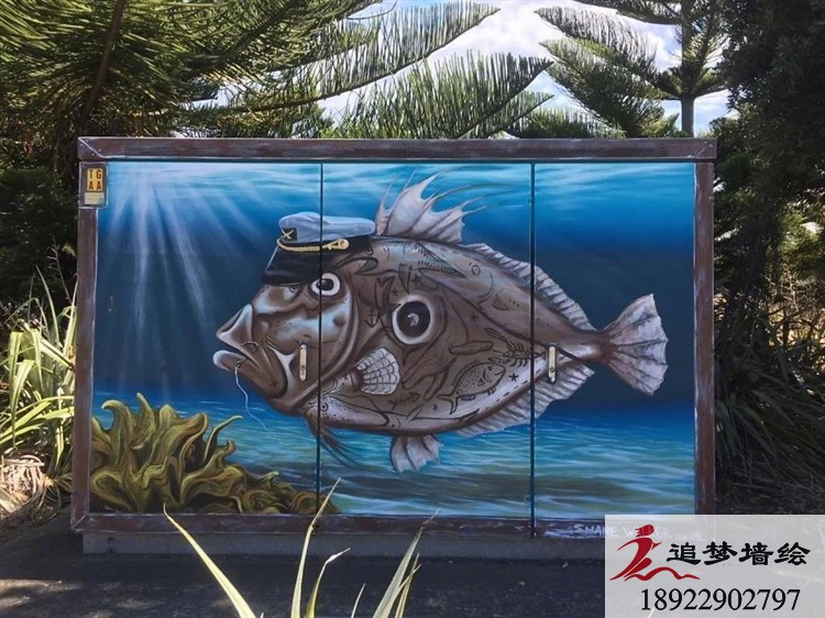 在佛山顺峰山有很多电箱穿上了“新衣”,这是我们追梦墙绘的小小杰作,这些可爱有趣的绘画势必会更加吸引游客在此玩耍。憨憨可爱的小海豹、神秘的黑色鳗鱼、威武的“军人”大鱼、有趣的相机、收音机、动物巴士车等等。这些有意思的画面,使得这些电箱不再是枯燥铁皮,让人眼前一亮,拍照留念。