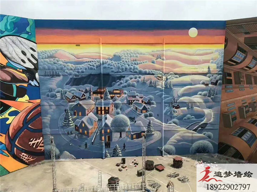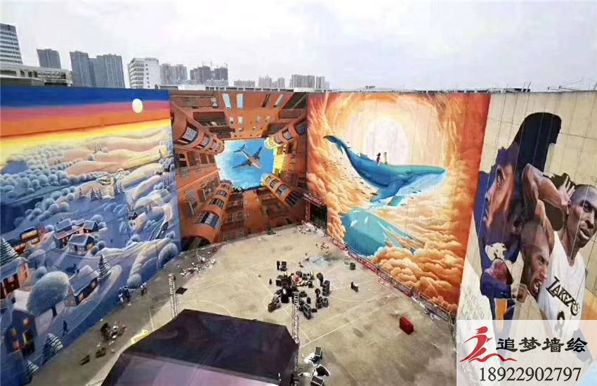 墙绘项目介绍:该项目的艺术彩绘采用了科幻,插画,运动等多主题与商场相结合的方式,在适当的位置绘制具有代表性的场景,给大众以直观的感受,避免了商场外墙的单调和乏味。不同的位置采用不同场景的表现形式极具亲和力;给人以憧憬的空间;更给以大众直观的功能性展示...完工以后得到极大地认可