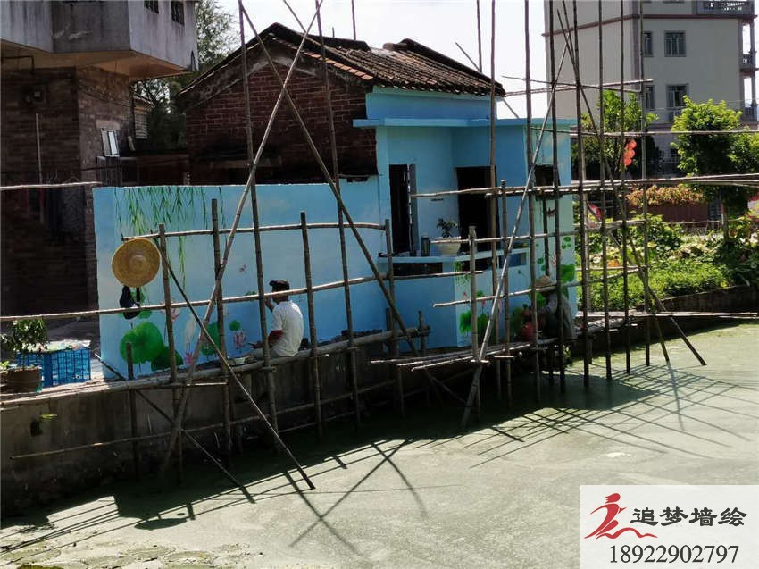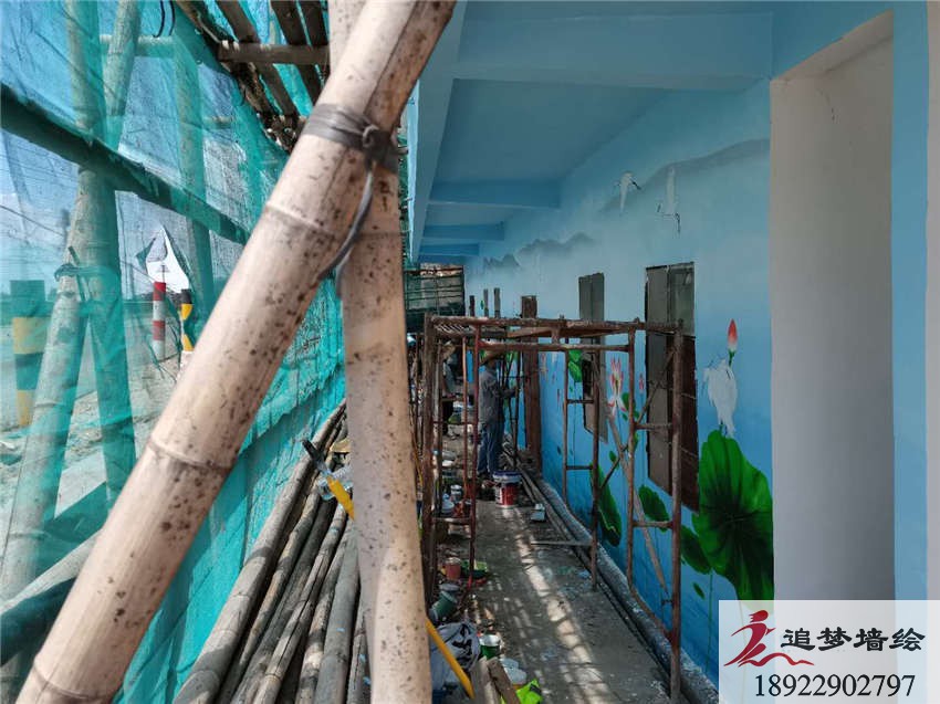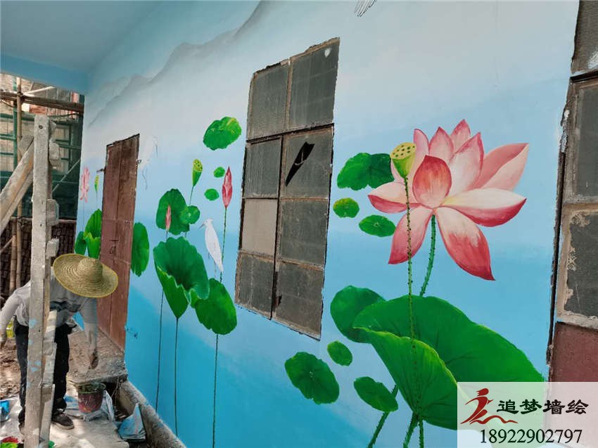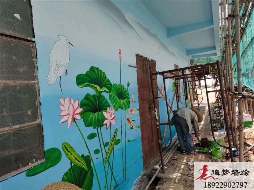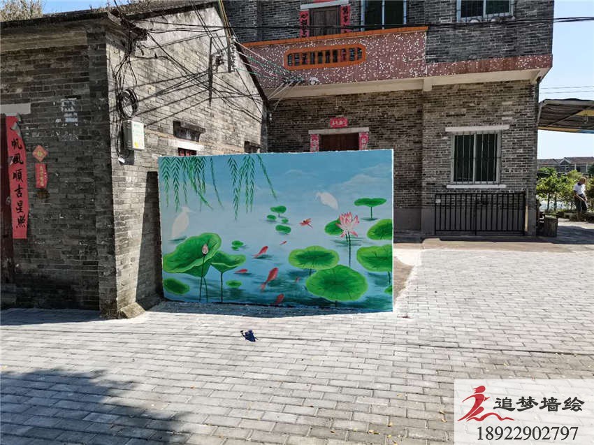 墙绘项目介绍:江门鹤山文化墙主要绘制彩绘图案是和鹤山文化有关系的,整体设计图案围绕咏春拳,荷花,白鹭,鹤山醒狮,石板桥为主题,突出鹤山市当地小桥流水人家的人文环境。墙绘整体基调色彩明朗,展示出当地的文化底蕴和环境优美的特点
