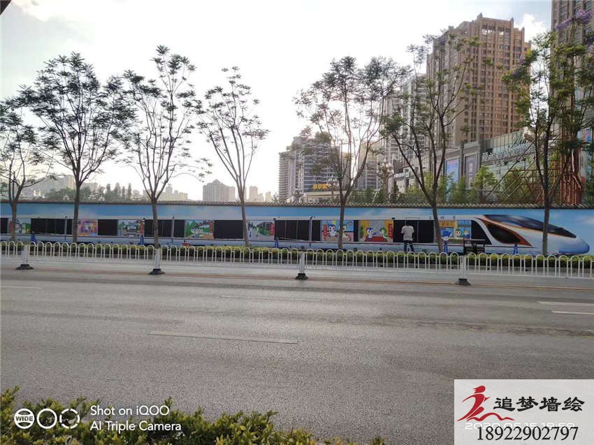 该墙绘项目突出全面创建文明城市的主题,为了配合城市采用了列车和城市风貌的卡通形象作为图案,整体背景是绿化的环境,卡通人物在列车中不同故事的布置,色调明快,颇具童趣气息,主题中心简单明了,给人以温馨的感觉,让人们更好的共同创建文明城市!作品已完成,敬请欣赏!