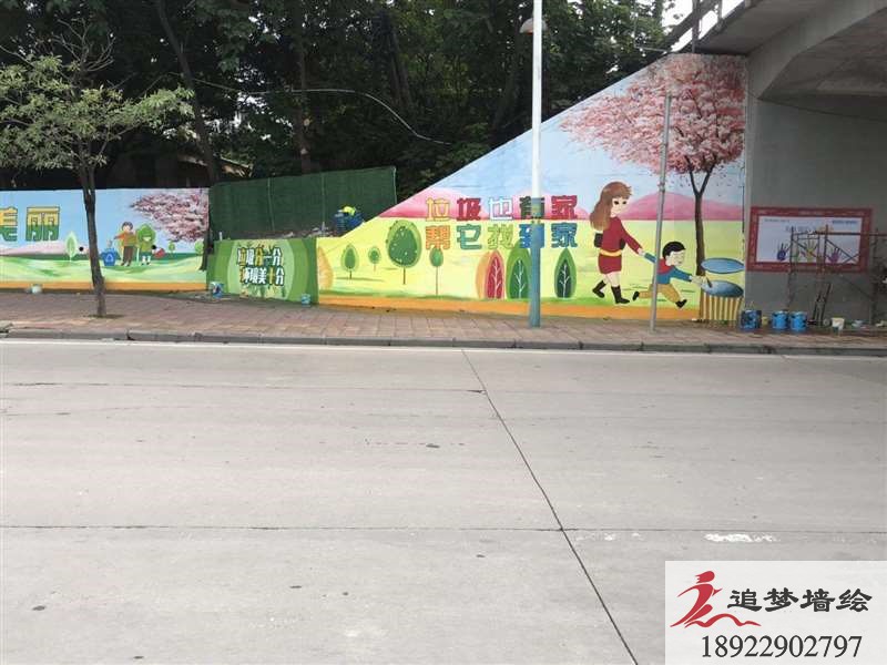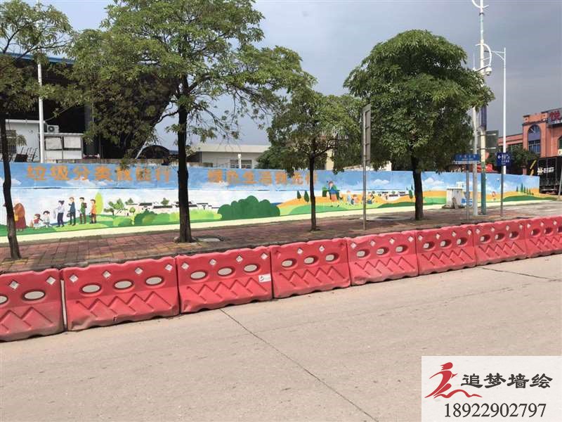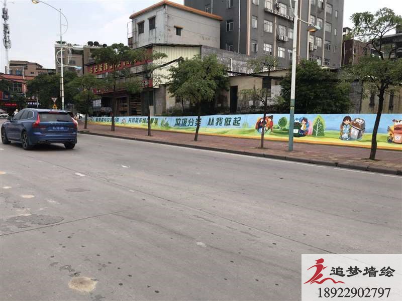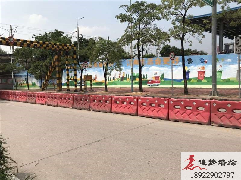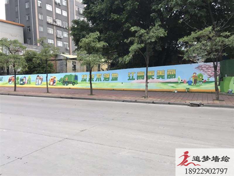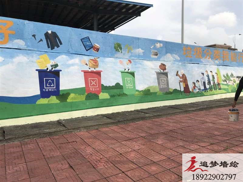 墙绘项目介绍: 江高这个的项目主要绘制彩绘图案整体设计围绕“垃圾分类我能行,绿色生活”主题,突出美化环境的主题。图案是以可爱的卡通户外青山人物与色块相比较的垃圾分类桶为主,采用图文结合的表现形式。墙绘整体基调可爱、有趣,突出了垃圾分类的主题。