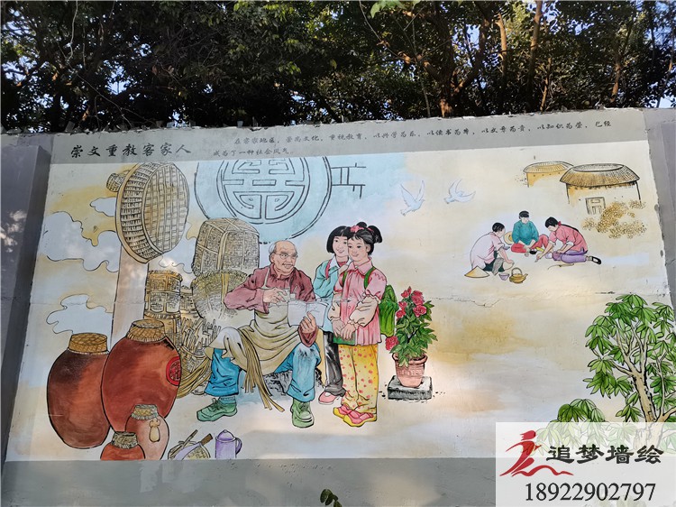 客家文化墙墙绘项目完成,敬请欣赏!