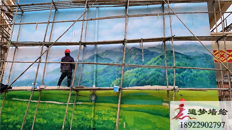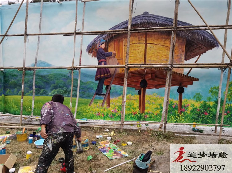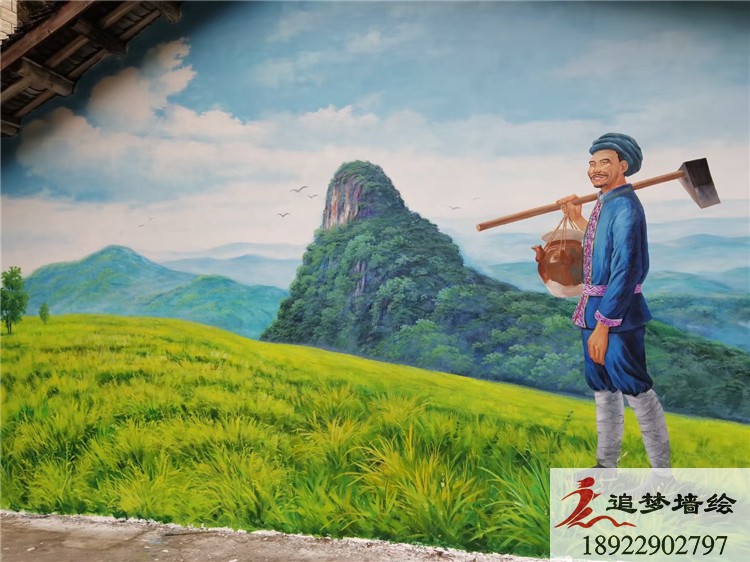 绘项目介绍:韶关乳源瑶族文化墙的设计主题以油画风格为主。以日常生活的劳作为主体,在不同的位置绘制给人以直观的感受,与周围的环境相呼相应,融为一体,成为一道美化生活环境、装饰的靓丽风景线的同时也能让人了解当地人民的劳作场景