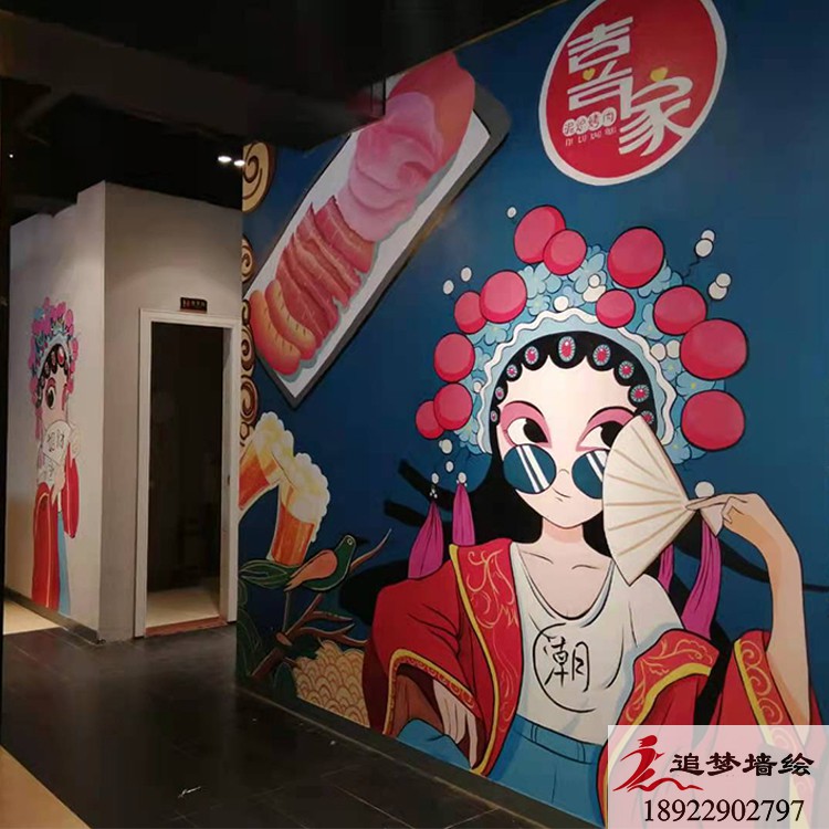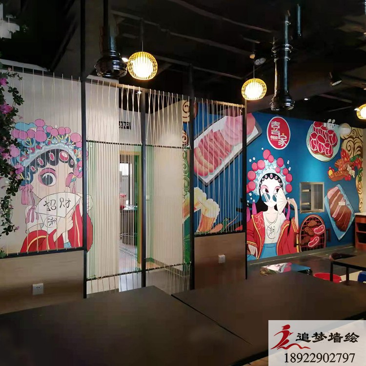 佛山的一日式料理店即将开业,店主想要给他的点增加“烤肉气氛”,所以想要绘画一些有国潮烤肉韵味的墙绘。于是找上了我们追梦墙绘来设计,当然客户也爽快,他要画的东西也很明确,给我们一看就是烤肉类型的浮世绘。需要设计的并不多,因为客户已经确认好画的图了,只是稍作修改而已。但是浮世绘画起来不容易,我们稍微多画了几天才搞定。以下就是我们为店主画的作品,有烤肉、国潮人物、等画面,富有烤肉气息,店主也是很满意,这次就这样完美的完成了项目。