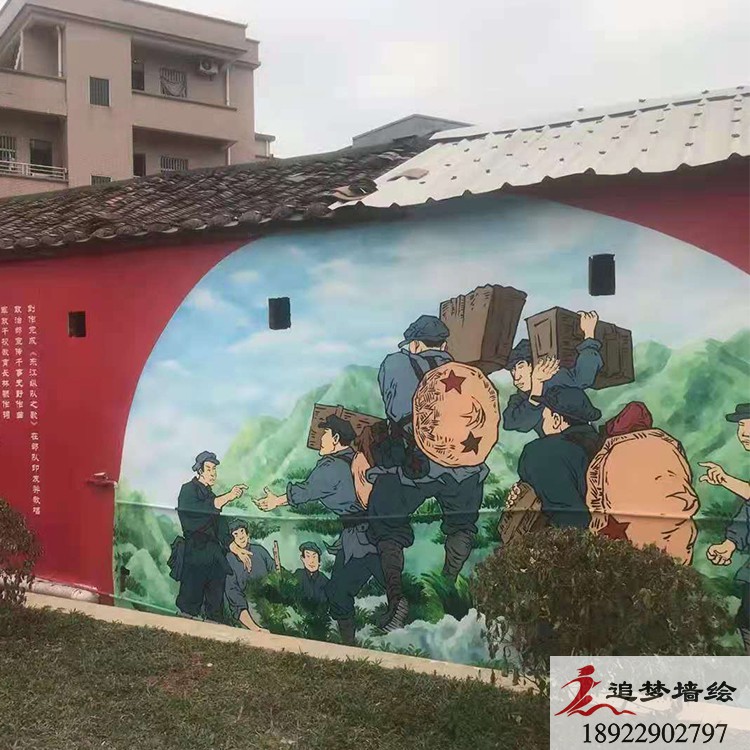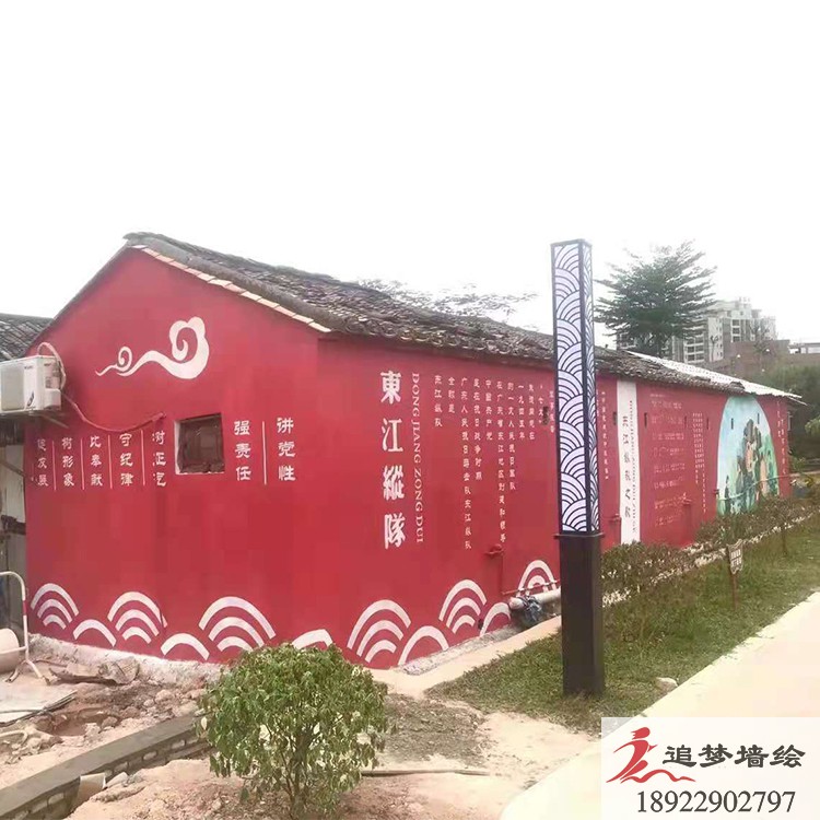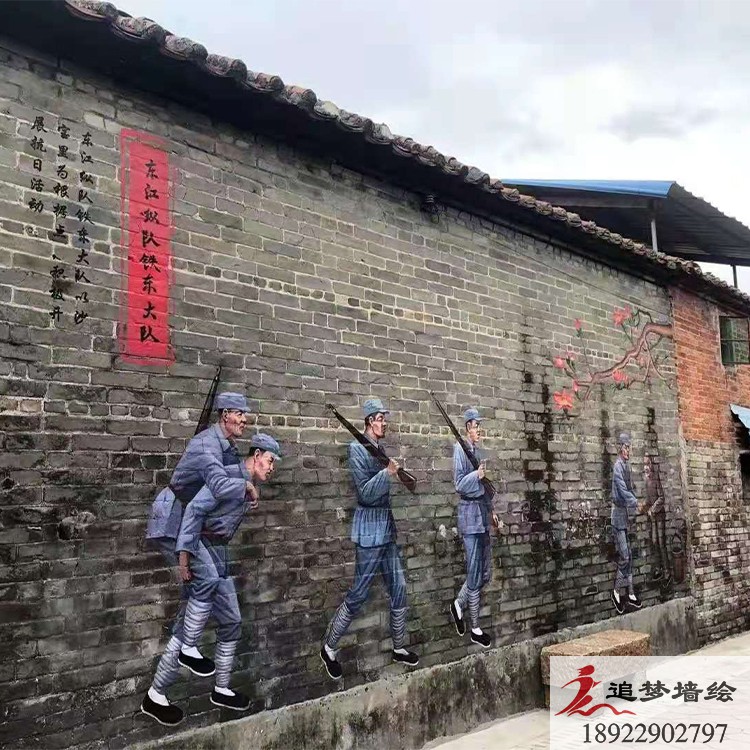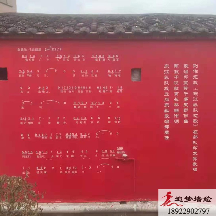 追梦墙绘在谢岗镇开展工作,为谢岗镇进行装饰工作,在墙外上面看到各种抗日战争主题,还有战争的歌曲与谱子。装饰完了外墙,我们还外墙的墙绘绘画上了韵味十足的抗日人物。以下就是一些现场的图片。