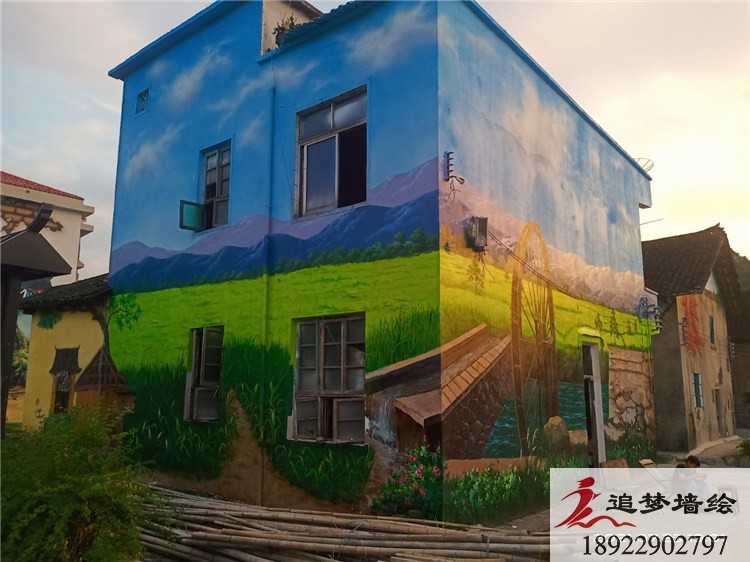 墙绘项目介绍:美丽乡村建设主要绘制彩绘图案和乡村气息紧紧联系,整体设计围绕乡村为主题,突出乡村天然环境。图案以乡村作物和3d技术结合,视觉感强。墙绘整体抢眼。共同创建更美丽的乡村!