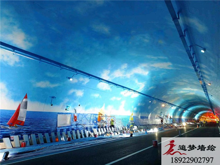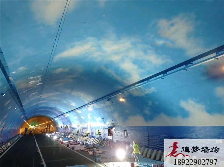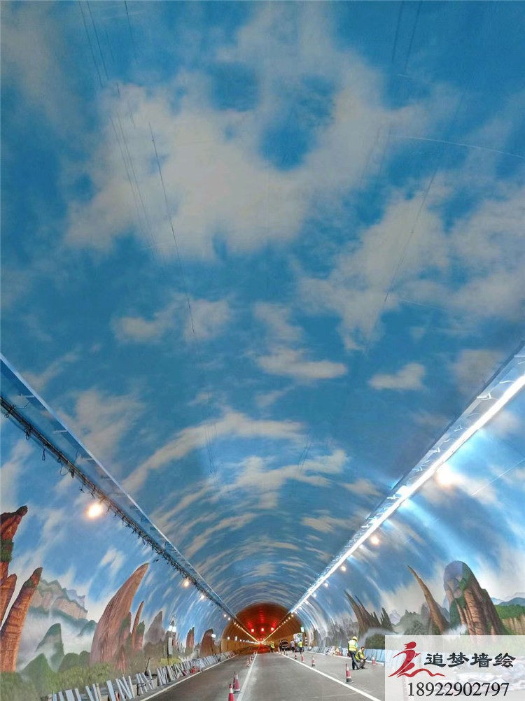 墙绘项目介绍:在隧道中,也可以欣赏到湛蓝的天空,令人心胸开阔,鲜明的色彩,在隧道中通透明亮。