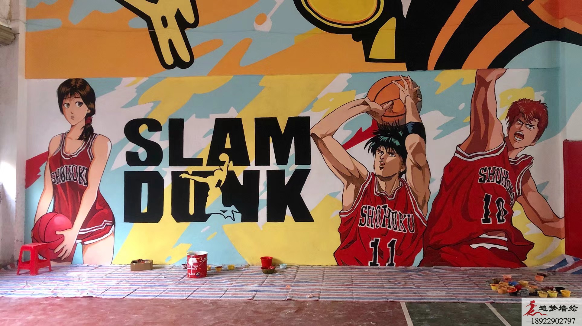 墙绘项目名称:梦飞篮球场涂鸦