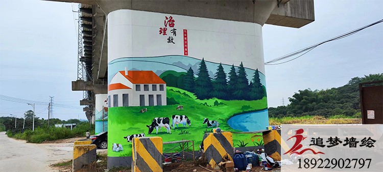这个项目的名字是增城仙村奶牛小镇,主要内容是在高架桥墩完成一个跟奶牛主题的相关的墙绘作品,通过奶牛主题的素材与墙绘相结合,更能凸显出所要表达的风格,它更能起到一个宣传的效果,这更能体现出一幅墙绘作品的好坏。